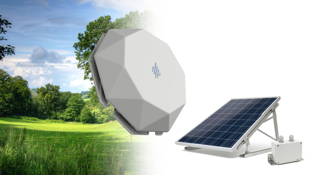 Oftmals fehlen an den Rändern einer Kommune, in Wäldern oder landwirtschaftlichen Flächen Strom- und Internetanschlüsse. Für diese Gebiete bieten wir eine vollständig autarke Version des LoRa WAN Gateways an. Ausgestattet mit einem Solarmodul für die eigene Stromversorgung und einer Mobilfunkanbindung überträgt es Daten absolut unabhängig von der örtlichen Infrastruktur bis zu einer Fläche von 700km².